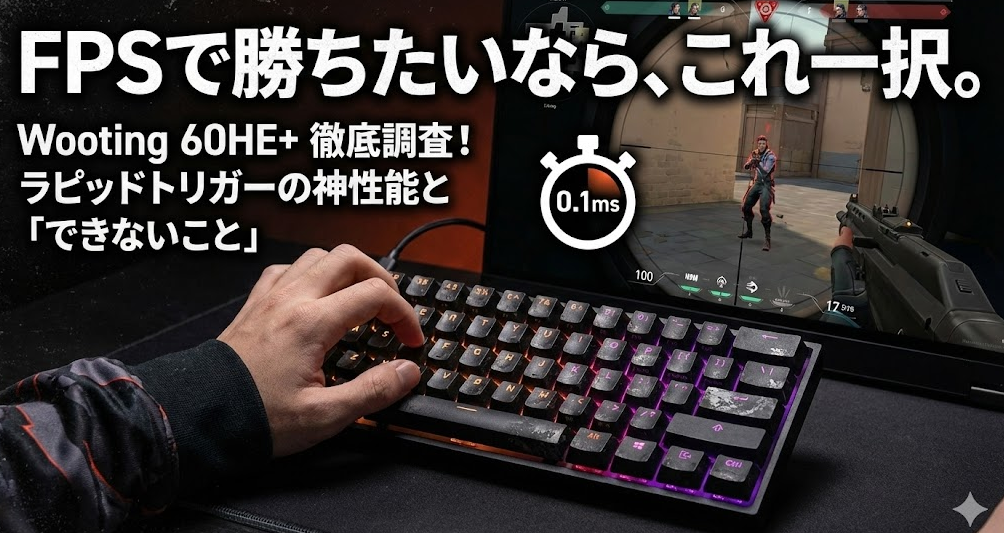 【Wooting 60HE+ 評判】VALORANTで勝ちたいならこれ一択?ラピッドトリガーの神性能と、普段使いには不向きな「できないこと」を徹底調査