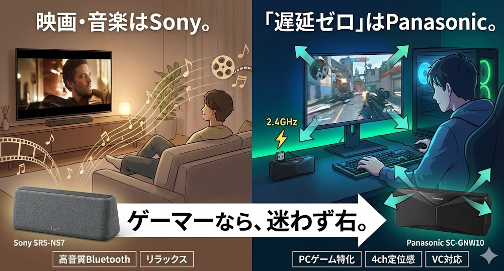 【比較】Sony SRS-NS7 vs Panasonic SC-GNW10。「ゲーミング」ネックスピーカーは何が違う?両方使った僕の結論